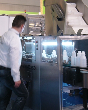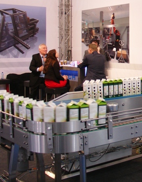 Mixed milk beverages, juices, smoothies and near-water products present especially stringent requirements for hygienic filling, as Manfred Härtel from KHS knows. As Product Manager Filling, Härtel is responsible for all filling technology at the Dortmund filling and packaging systems manufacturer. "Filling under aseptic conditions in particular is a protecting process for recontamination-free filling and sealing", he explains - a technology for which there are hardly any alternatives. In order to ensure the safe filling of sensitive beverages, the linear fillers of KHS can be blocked with a rotative stretch blowing machine. Thanks to the blocking, a possible introduction of contaminants is minimised, which has a positive effect on hygiene and system availability. A transfer module developed to this purpose harmonises the continuous flow of PET bottles with the step-by-step filling process. The containers are divided up into units of ten pieces each in the process with the help of a handover carousel. In keeping with the industry wish for greater flexibility, the module is available in three variants: for blocking with the stretch blowing machine, with an additional outflow for the Plasmax coating machine or an optional bottle inflow that makes it possible to process both PET and HDPE bottles.